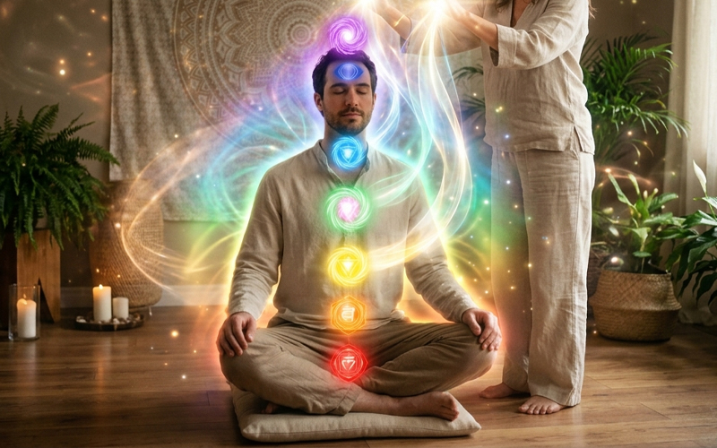 The body can heal itself faster if its energy system is cleaned and energized. According to this system, illness first appears in the energy body (aura and chakras) before it shows in the physical body.